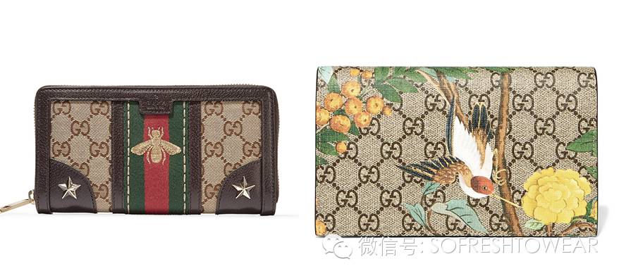 Gucci的钱包,左边这款是帆布和皮革拼接的,右边这款Linea D Donna是涂层帆布的