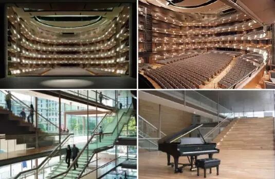 中心内部仿效慕尼黑巴伐利亚国立剧院的马蹄状包厢设计,演奏厅则坐于489块橡胶隔音垫之上,为观众提供了无与伦比的视角和至尊空间。